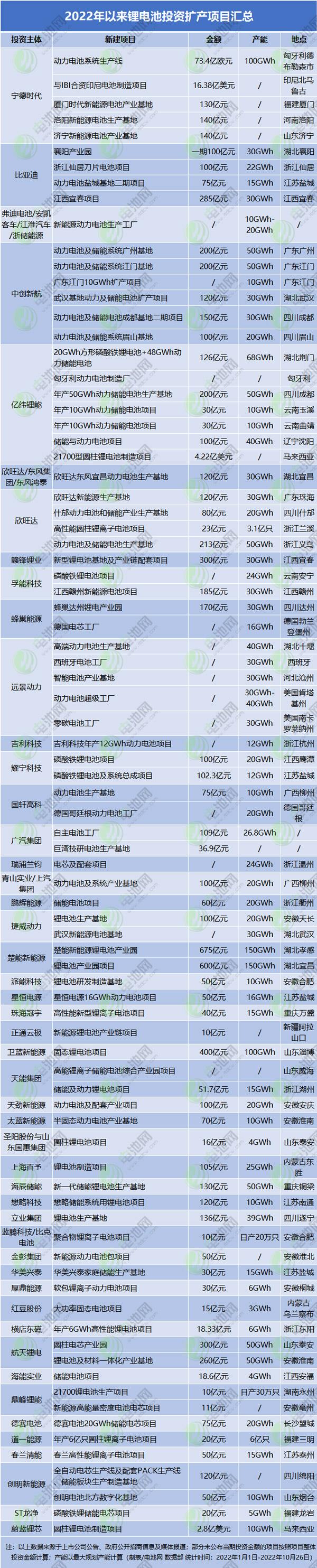 12月1日(rì)電池網公(gong)布的數據(ju)顯示,據不(bú)完全統計(jì),2022年以⭐來,僅(jin)在锂電池(chí)生産制造(zao)領域,新公(gōng)布的投資(zi)擴産項目(mu)🤟就多達84個(gè),其中🐇有69個(gè)公布投資(zi)金額,總金(jin)額超8427億元(yuán),平均單個(ge)項目投資(zi)額超122億元(yuán);公🔴布年産(chan)能的項目(mu)有68個📞,總産(chan)能約2038GWh。